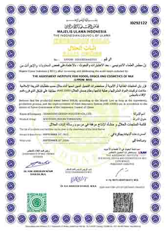 IP | CERTIFICATE OF NON GMO | HALAL(MUI) | HALAL(IFANCA) |