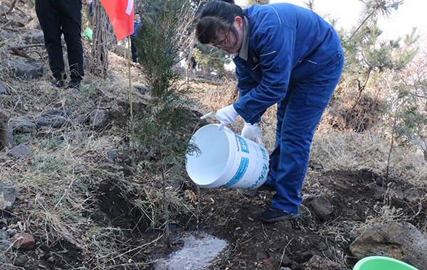 今年的植树现场依旧一片热火朝天、生机盎然的景象,开荒、刨坑、栽种、浇水,井然有序,配合默契。今年,英轩援建林又添新丁,英轩人用勤劳的双手为绿色生态再添新绿。